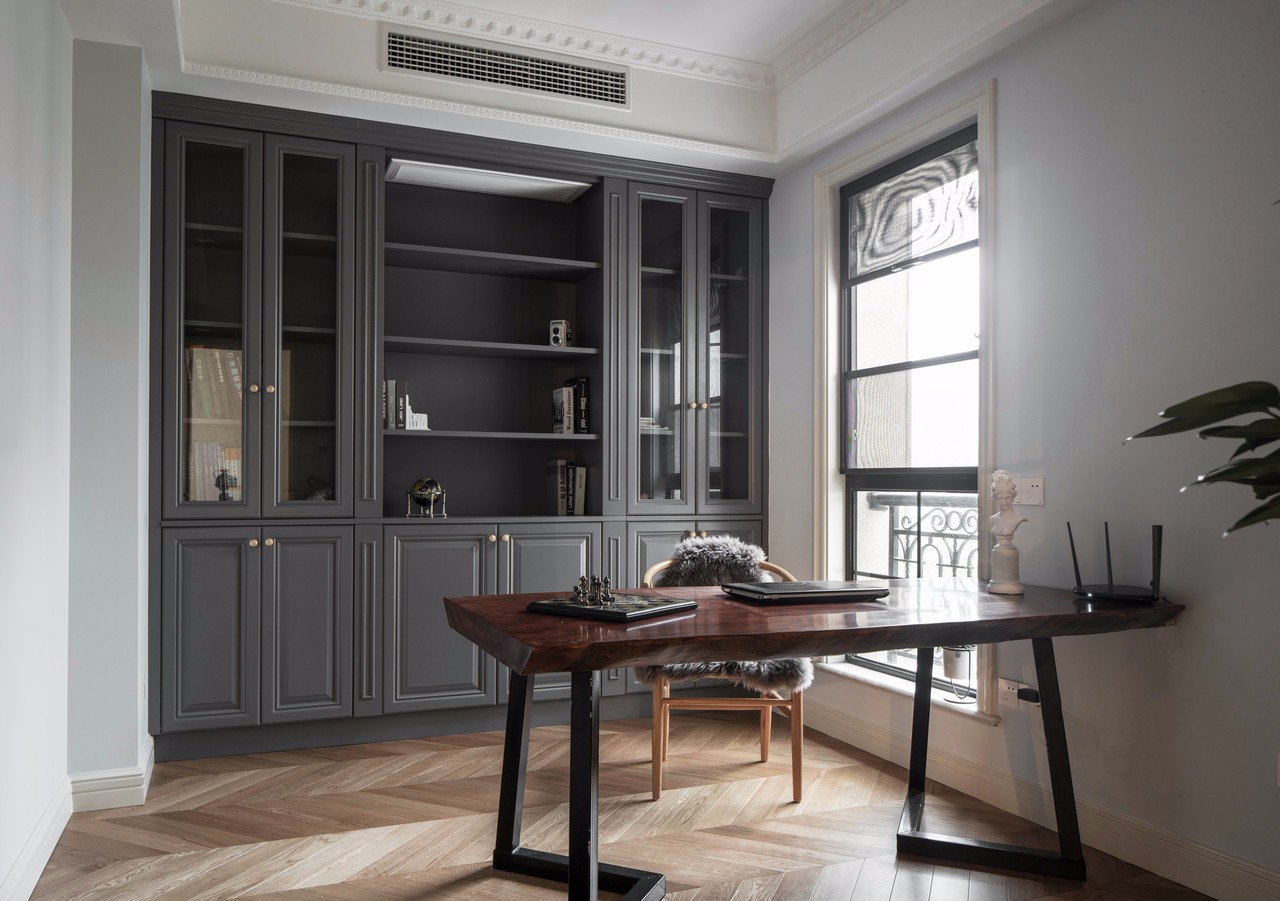 書(shū)房空間開(kāi)放之后,光線充足,空間自由,全實(shí)木材質(zhì)的定制書(shū)桌書(shū)架,搭配原木色的椅子,十分有質(zhì)感。 這大概是房東的私人空間,墻面的部分做了櫥柜,方便擱置書(shū)籍和小禮物的地方。顏色調(diào)性和廚房櫥柜保持了一致。 書(shū)桌買(mǎi)了簡(jiǎn)易型又文藝的桌子,甚至它可以搖身一變,變成茶室(自行想象)。靠近窗戶(hù)的位置,也是為了采光較好,方便閱讀和思考。有時(shí)候頭腦需要休息的時(shí)候,還可以向著窗外吹吹風(fēng),發(fā)發(fā)呆。